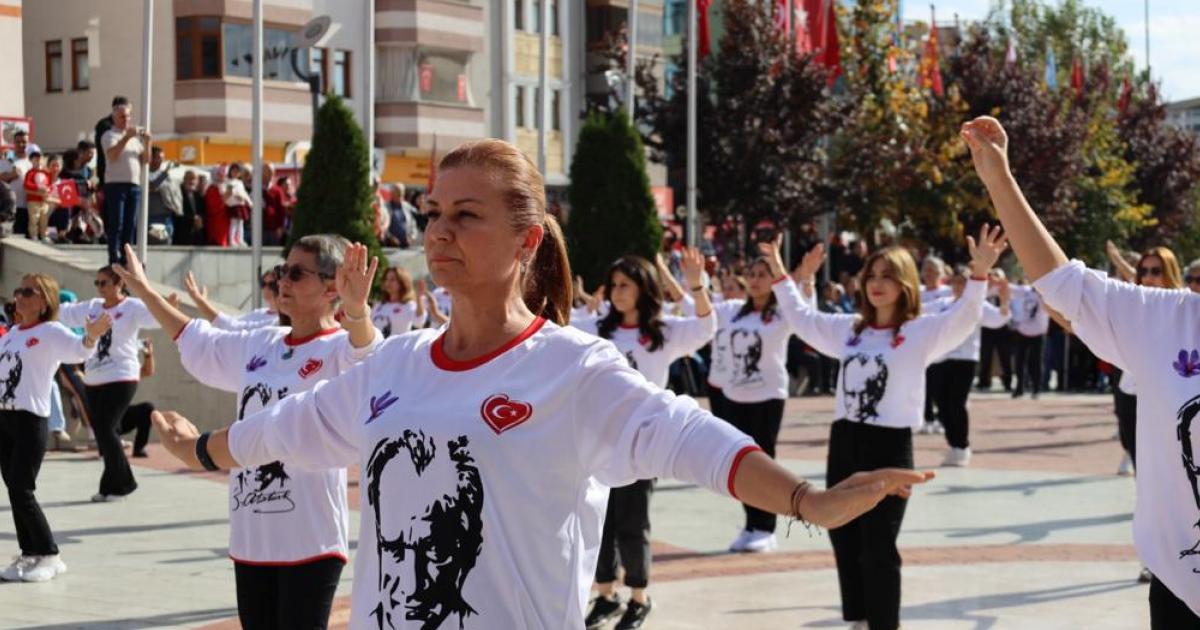 Karabük’ün Safranbolu ilçesinde Cumhuriyet’in 100. yılı kutlamaları çerçevesinde 100 kişi aynı anda zeybek oynadı.