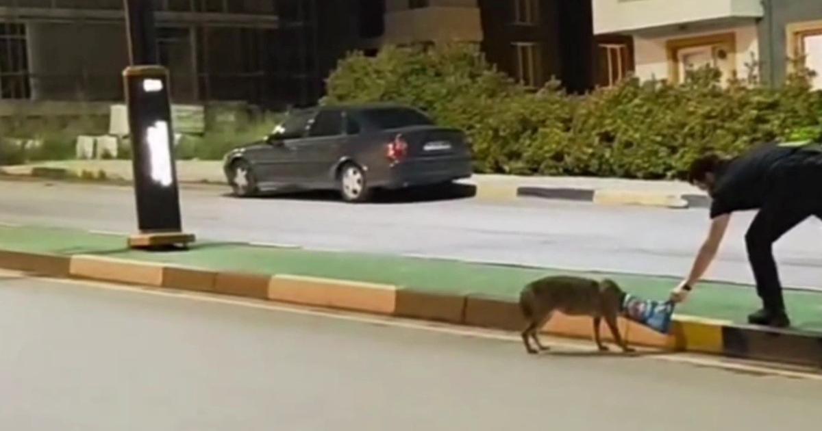 Poşetten kurtulan çakal, hızla bölgeden uzaklaştı. O anlar, çevredeki bir vatandaş tarafından cep telefonuyla kaydedildi.