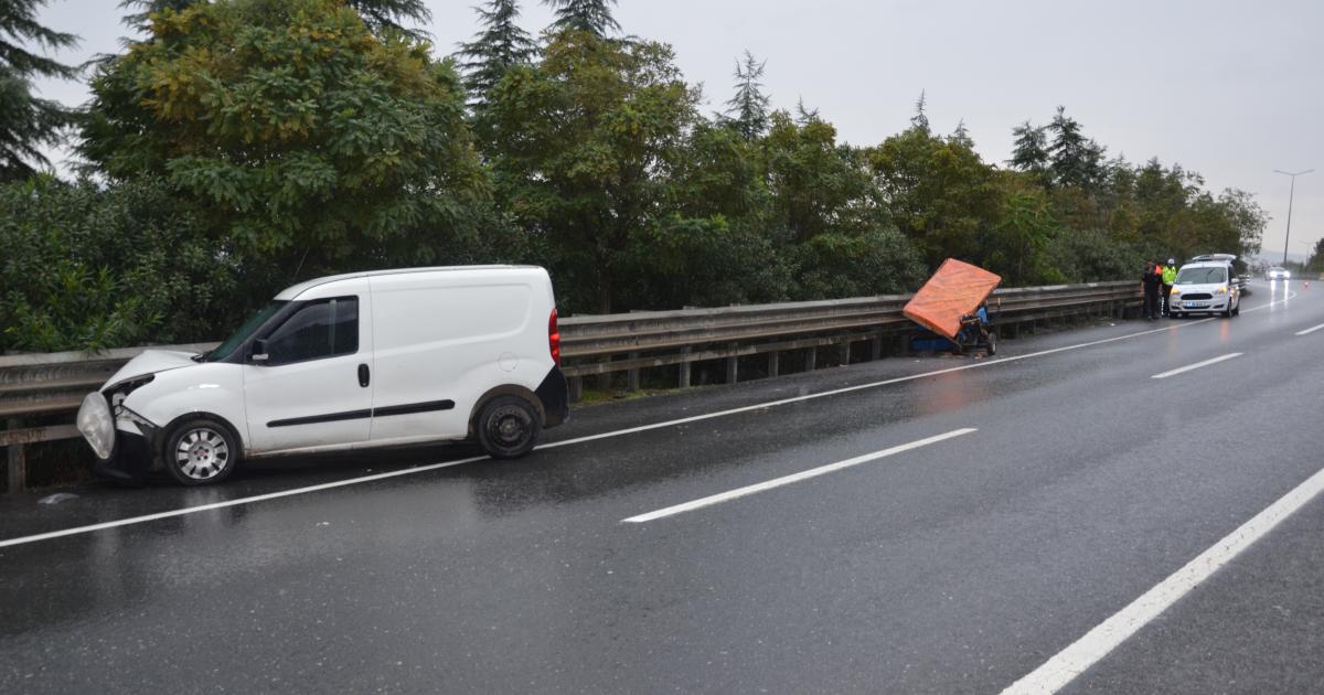 Kocaeli’nin Karamürsel ilçesinde D-130 kara yolu Yalova istikameti Ereğli Mahallesi mevkisinde M.G. (29) idaresindeki 34 GA 1535 plakalı hafif ticari araç, H.C. yönetimindeki pat pat diye tabir edilen tarım aracına arkadan çarptı.