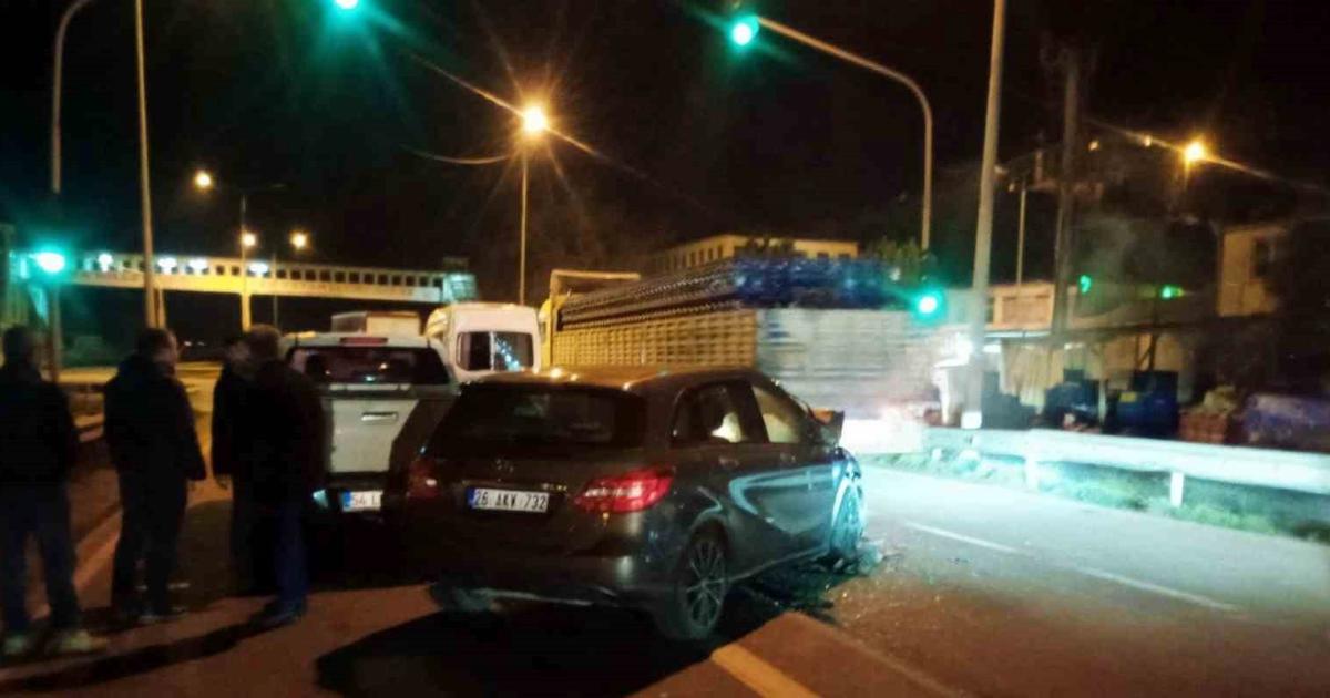 Trafik ışıklarında meydana gelen bu zincirleme kazada, araçlarda maddi hasar oluştu.