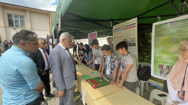 Festivale katılan Vali Erkan Kılıç ile İl Milli Eğitim Müdürü Cemil Sarıcı, projeleri inceleyip, öğretmenlerden ve öğrencilerden bilgi aldılar.
