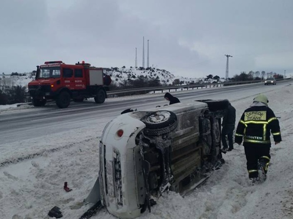 Gerede’den Karabük istikametine gitmekte olan 34 GN 4511 plakalı otomobil yolun buzlu ve kaygan olması sonucu takla attı.