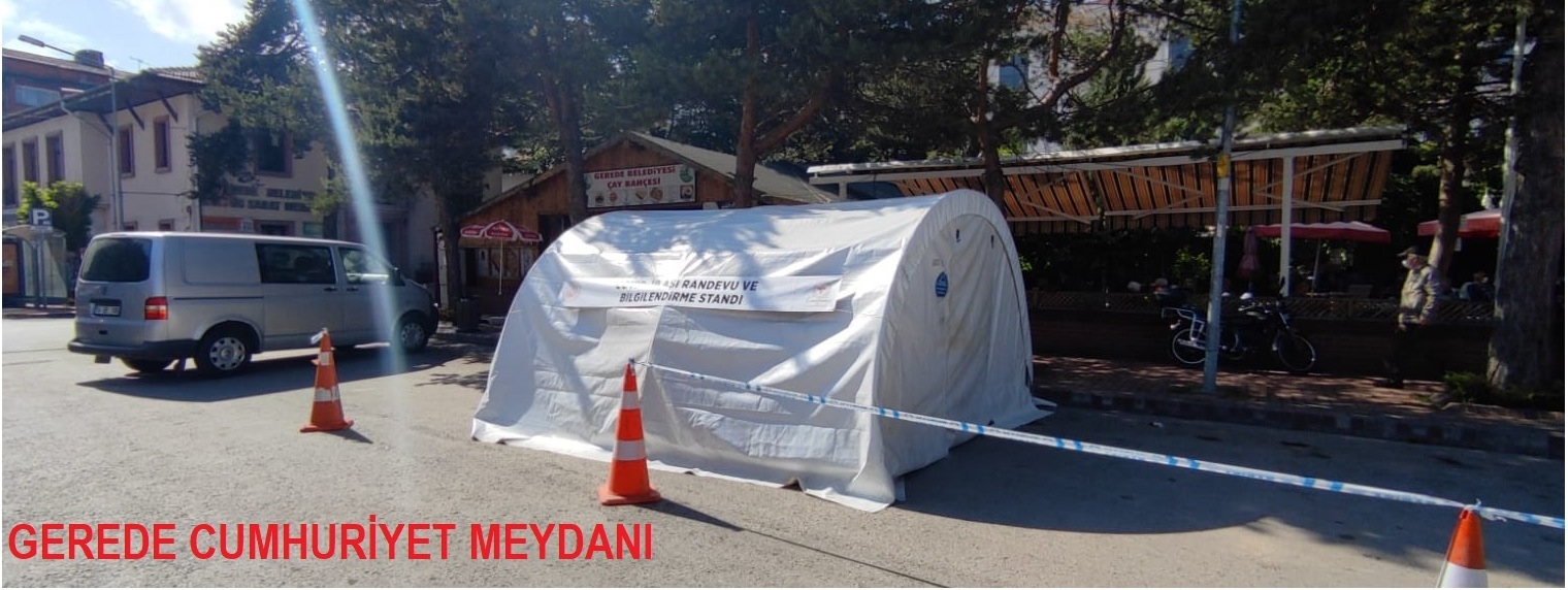 Gerede İlçe Sağlık Müdürlüğü, Gerede Cumhuriyet Meydanına kurduğu aşı uygulama çadırında randevu almadan ister Sinovac ister Biotech covıd-19 aşısı yapmaya başladı. Aşı hizmeti ile ilgili bilgilendirmenin de yapıldığı aşı çadırında 18 yaş ve üstünün koronavirüs aşılamaları başladı.