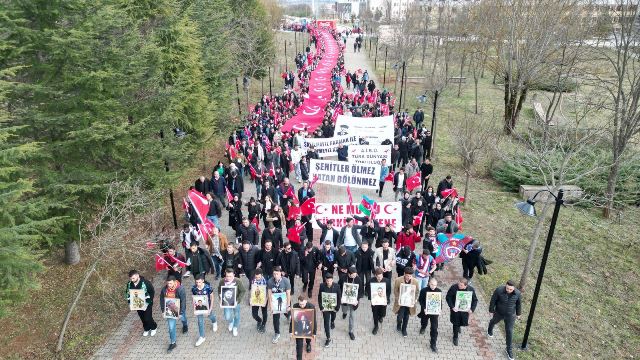 Ülkü Ocakları Bolu İl Başkanlığı ve Abant İzzet Baysal Üniversitesi Türk Dünyası Topluluğu’nun ortaklaşa düzenlediği “Şehitleri Anma ve Teröre Lanet Yürüyüşü” etkinliği, öğrenci topluluklarının katılımlarıyla gerçekleşti. Anlamlı etkinlikte aziz şehitlerimiz rahmet, minnet ve dualarla anıldı.